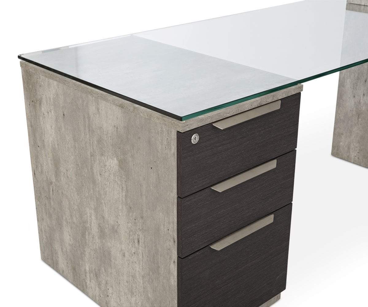 The Alva Executive desk takes on an industrial look and adds classy sophistication with its clear glass surface area. Designed to provide an expansive workspace, the L-shape formation also adds visual interest in your office. If you prefer a clean desk, tuck supplies away in the two storage cabinets that lock for security. Use the Alva Executive desk as the foundation for your professional office space and enjoy conducting business better than usual.