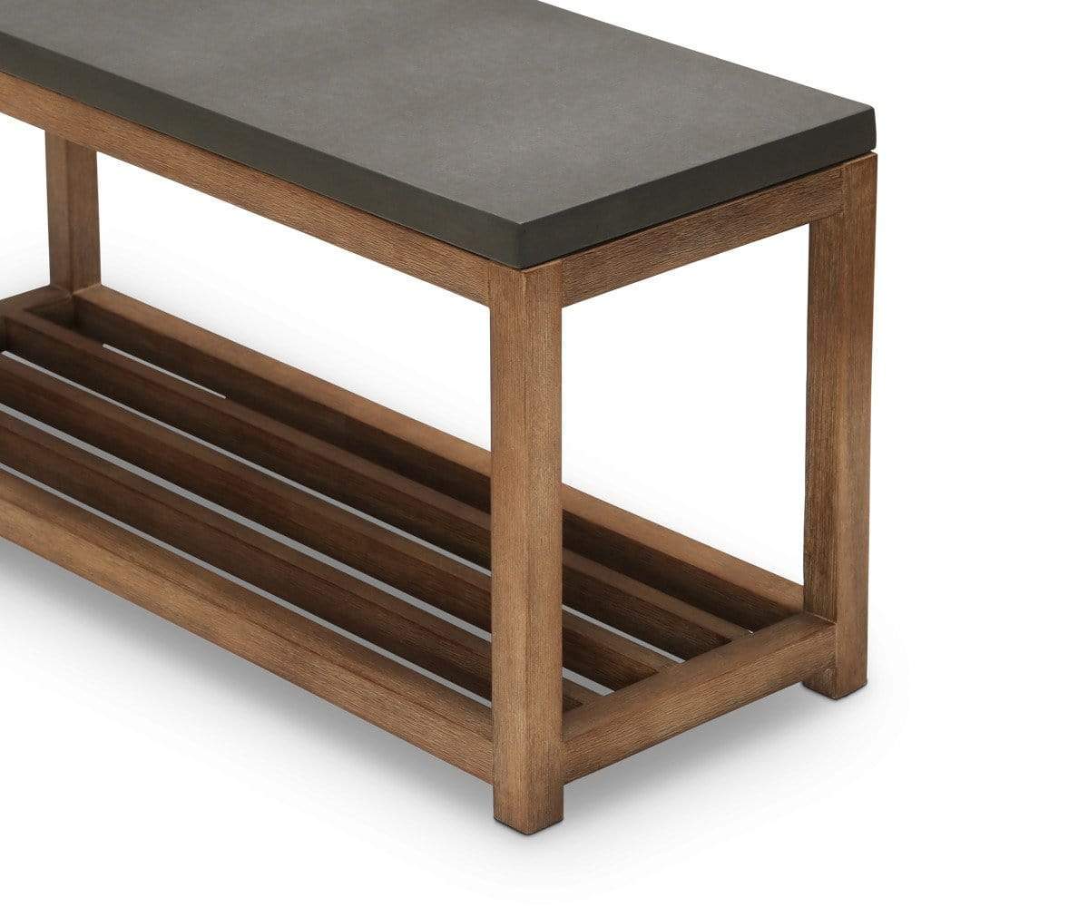 Make a modern, minimalist first impression with the Atlas entry bench. The base is made from solid acacia wood, which withstands weathering. The bench seat is made from a lightweight, durable faux-cement composite. Enjoy this bench indoors or out.