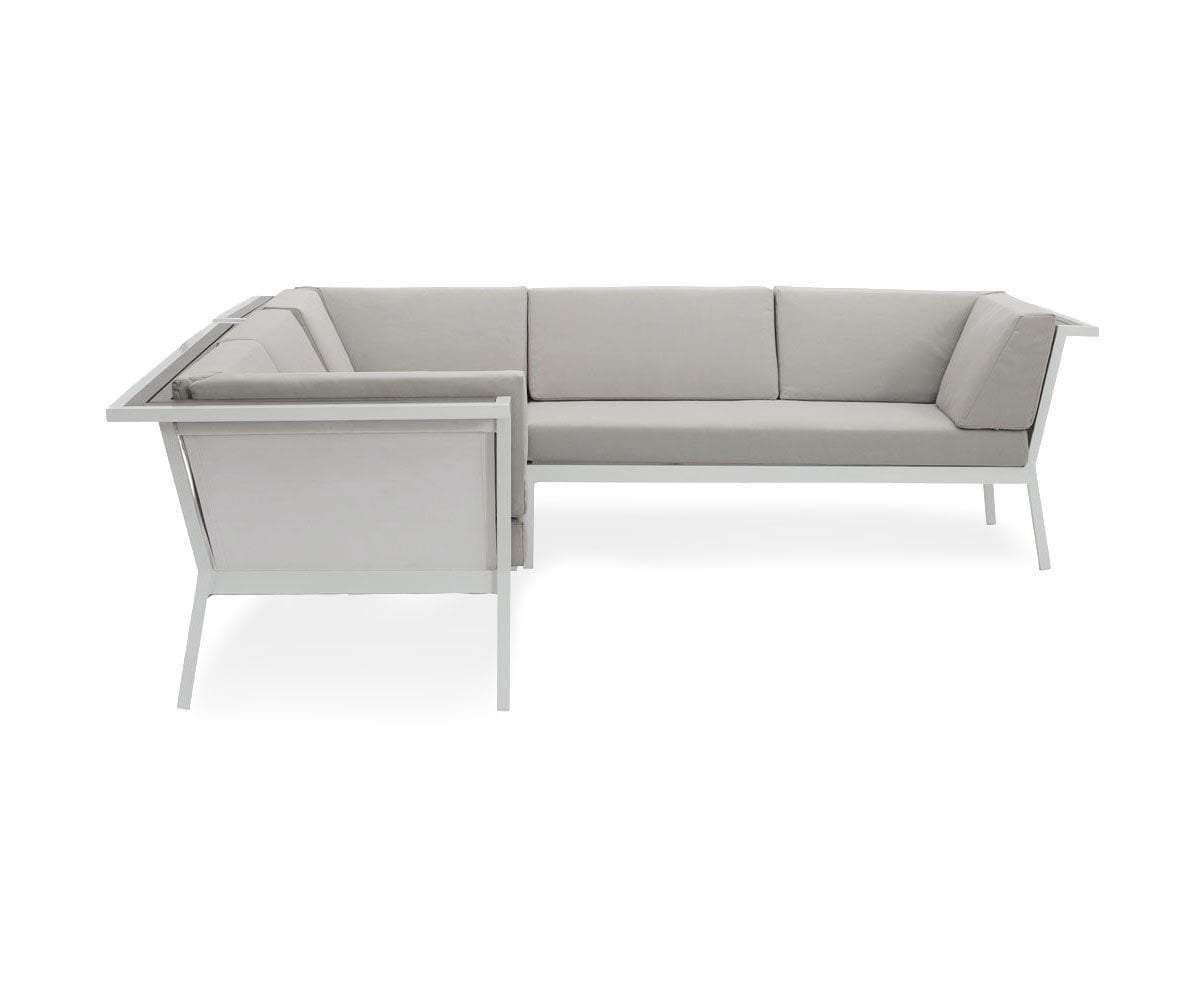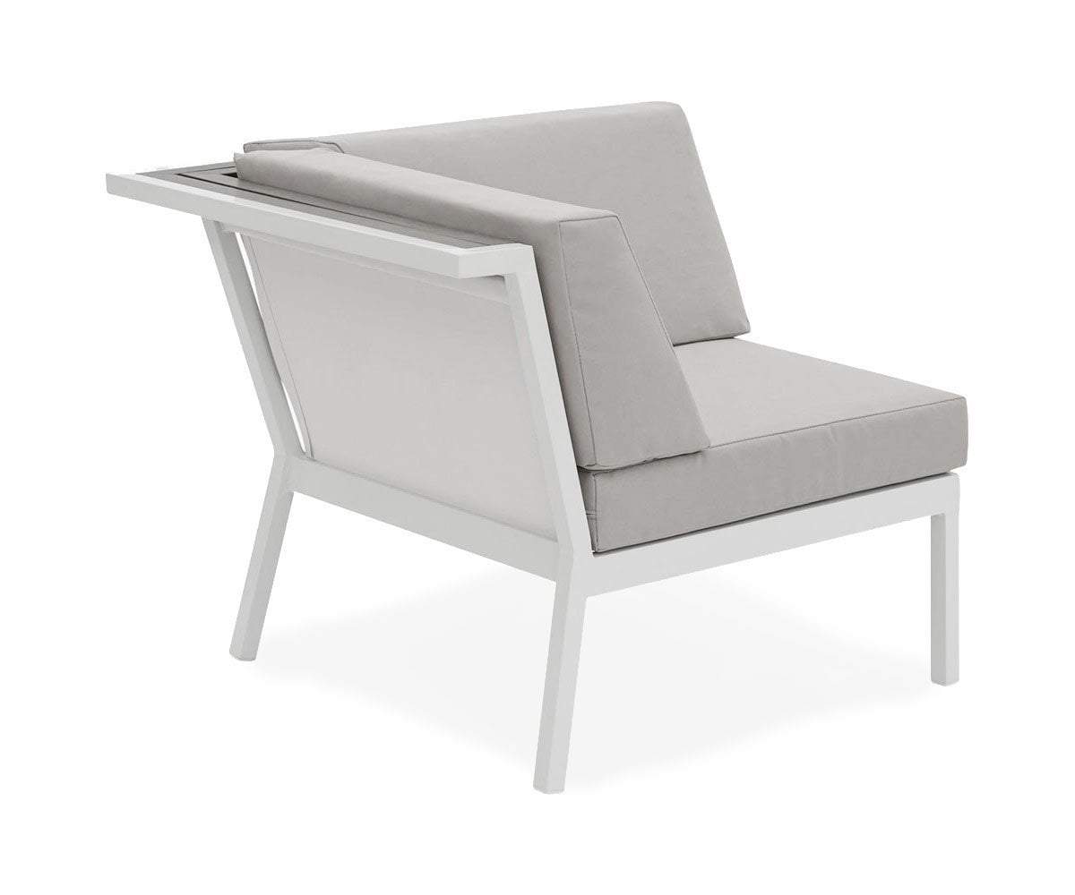 Set the tone for your outdoor space with a clean, contemporary aesthetic. The pale neutral shade of the Aurora outdoor sectional's frame subtly underscores resin-wood detailing. Each cushion is wrapped in high-performance Olefin material, which is water-repellent, stain-resistant and mildew-resistant. It also has a powerful color fastness rating to resist fading caused by UV rays.