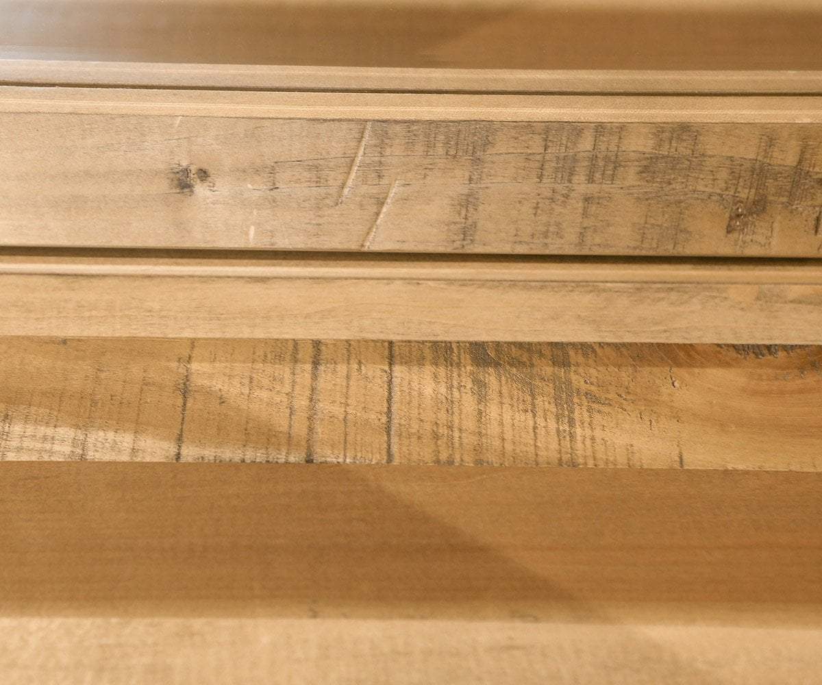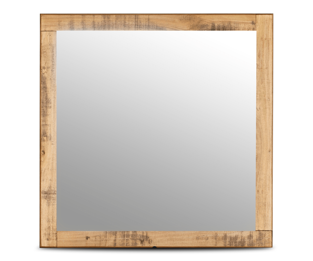 The square Bolig wall mirror is framed in solid American poplar with a distressed finish. Add light and rustic charm to your space with this piece that coordinates perfectly with the rest of the Bolig collection. The rustic reclaimed look of this collection is achieved through an intentional distressing technique that applies burn and saw marks to the surface while retaining and highlighting natural characteristics in the wood. This technique results in a reclaimed driftwood appearance, which adds personality and a one-of-a-kind uniqueness to each piece.