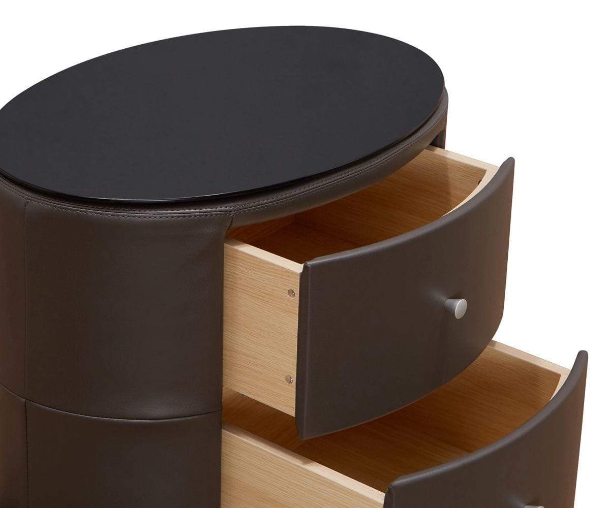 The Cento nightstand adds a modern touch to your bedroom decor. Two drawers provide easy-access storage, and the piece comes with a sleek glass top to provide an extra layer of protection for the upholstery.