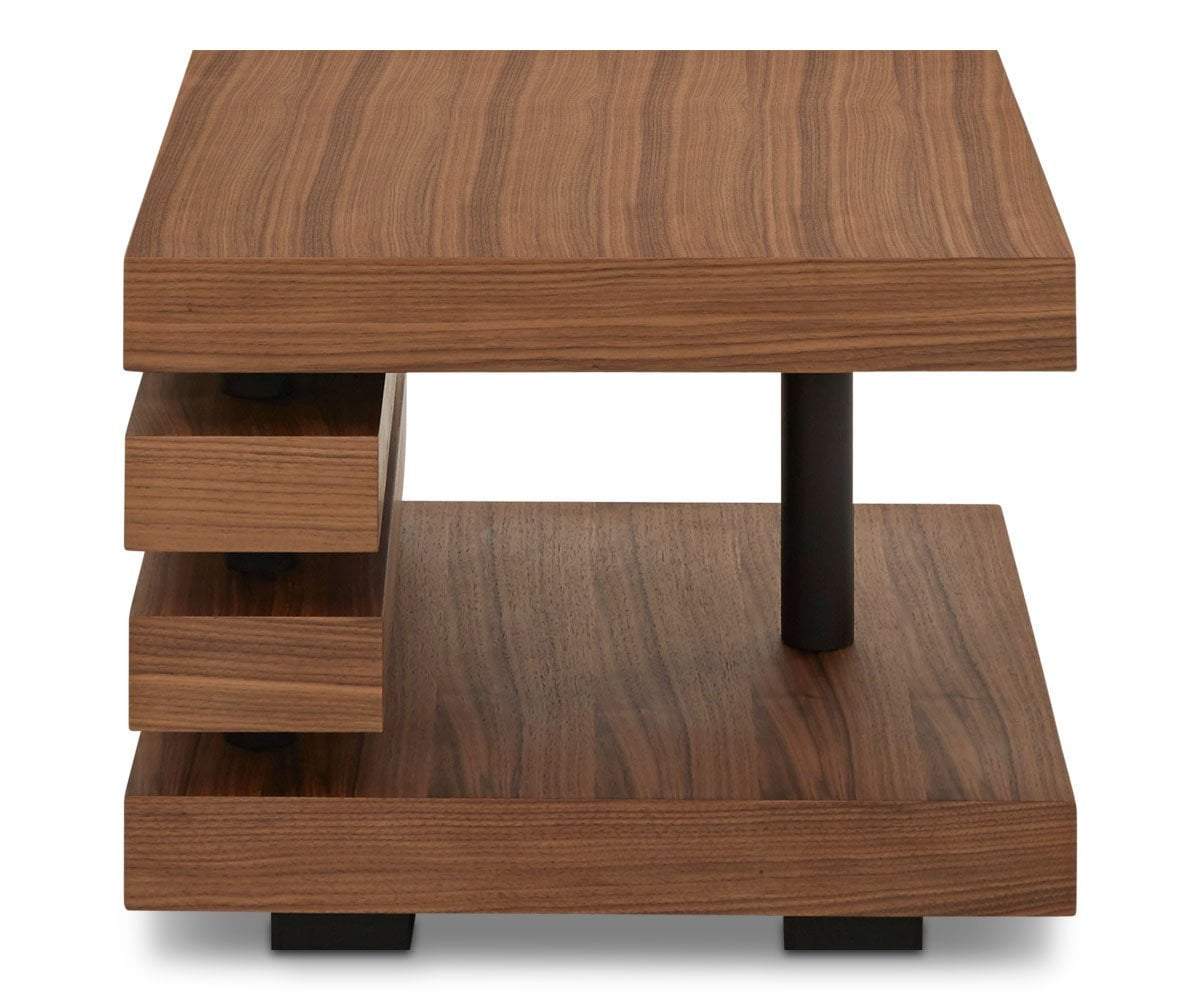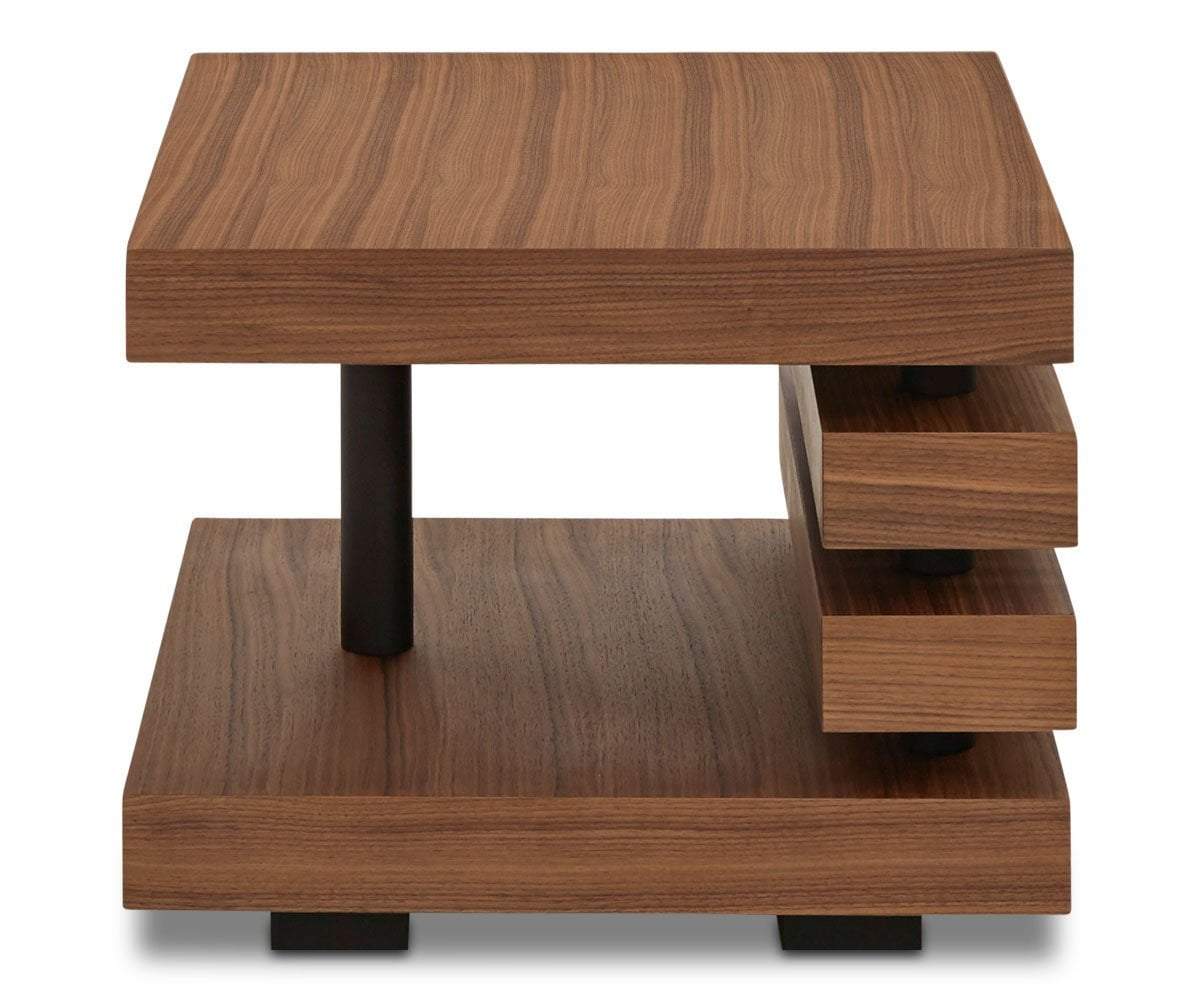 Part of the beauty of the Egersund end table is that guests may think you have acquired a new work of modern art. In reality, you have a handsome piece built to serve. Featuring a tiered block style, it has two surfaces for storage or display with the wood grain pattern woven into the simple design.