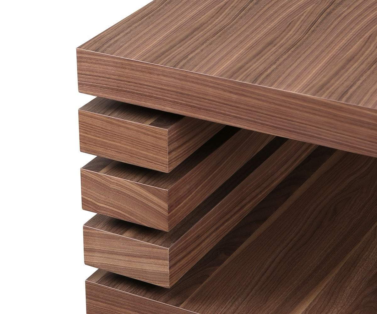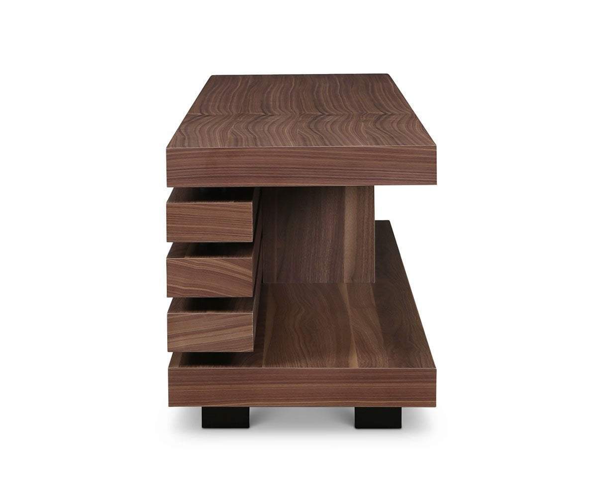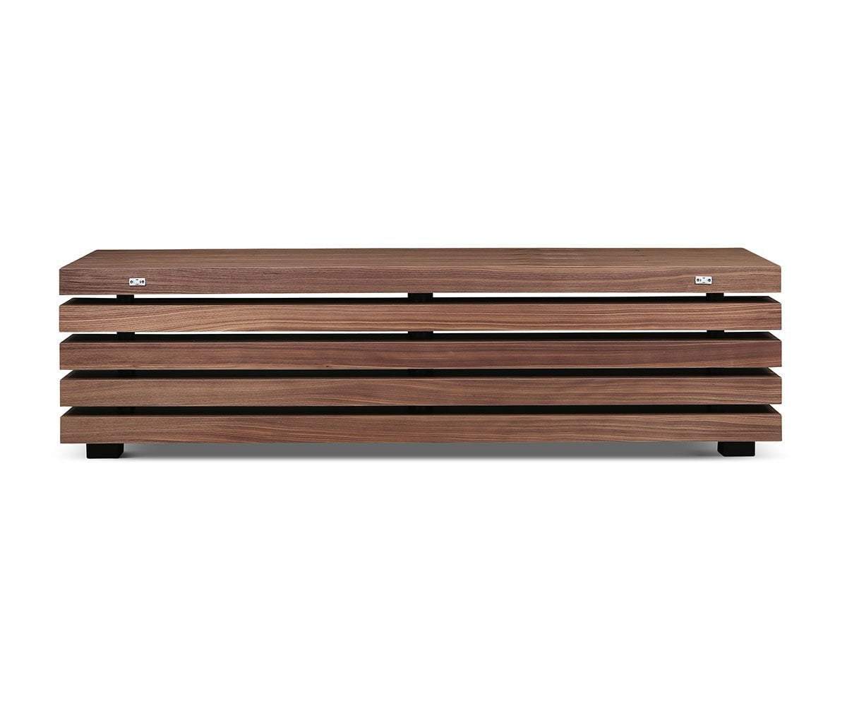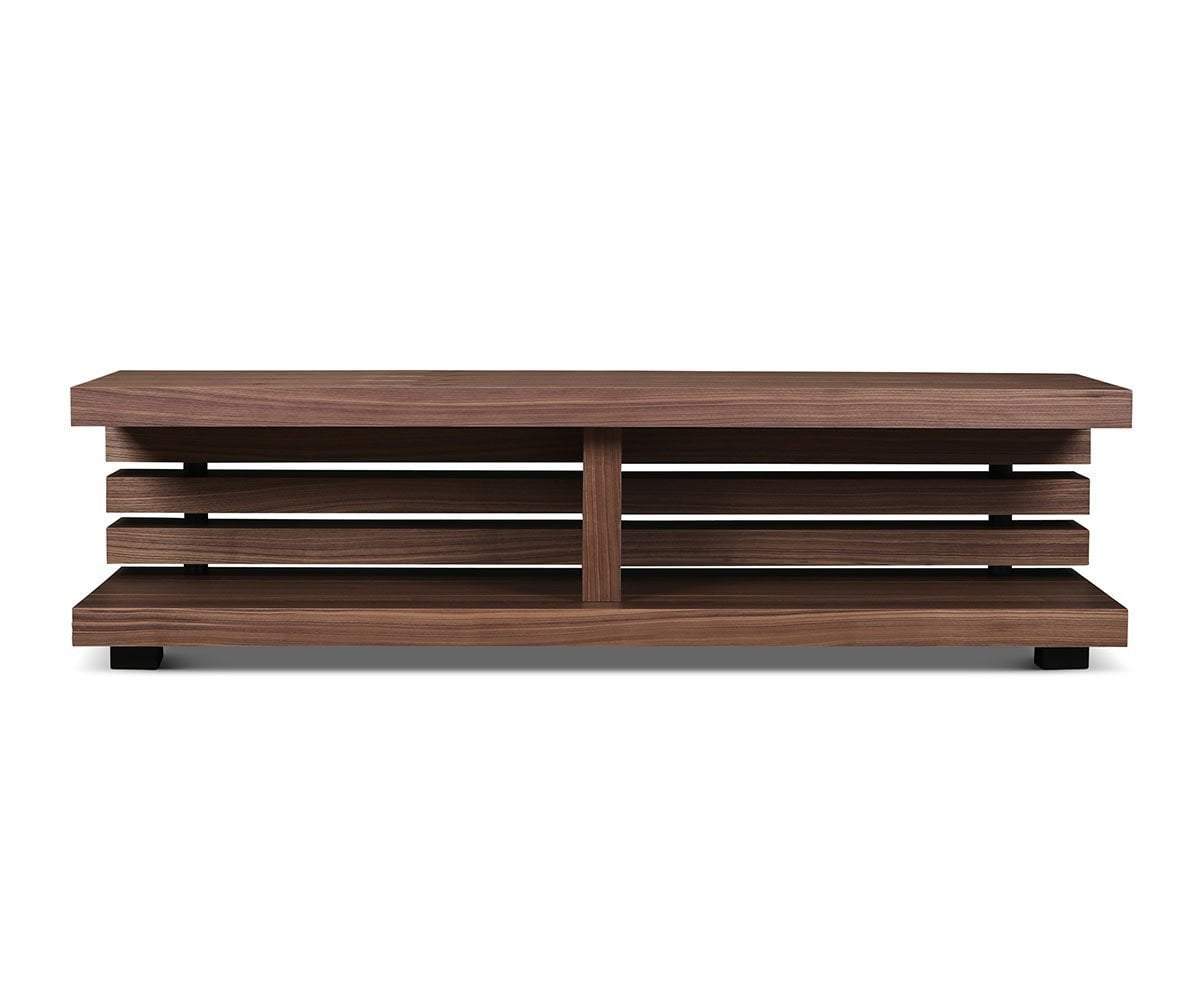 The Egersund media stand is a visually intriguing example of minimalist design. Featuring two solid surfaces for display and a low profile, it is a fully functional piece that makes a statement in your living space. The beauty of the pattern in the wood grain is balanced with the masculine build, resulting in a piece that fits in well with many different styles of decor.