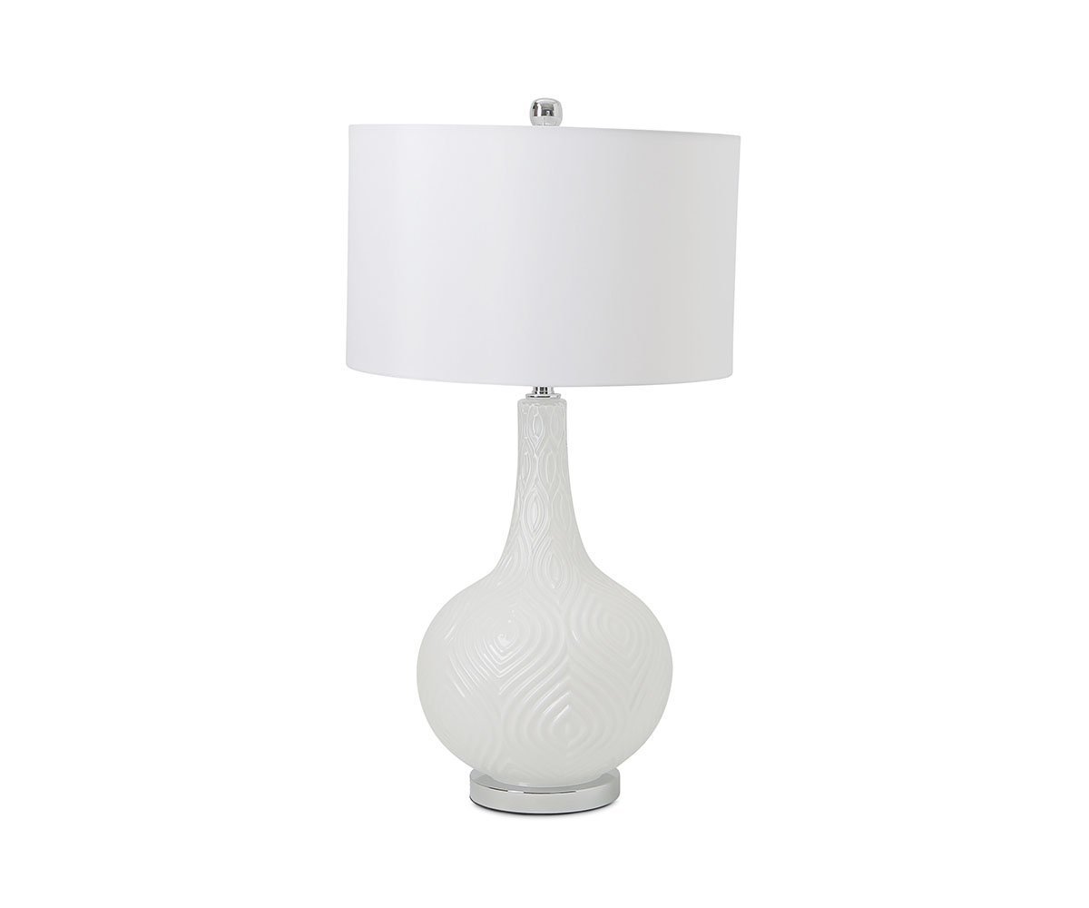With a rounded base made from glass, the Einar table lamp brings an elegant and modern contemporary vibe to your home or office decor. Wonderful texture is added to the design with an intriguing, repeating pattern incorporated into the glass form. Finished in white, this fixture is a perfect complement to any desk or tabletop.