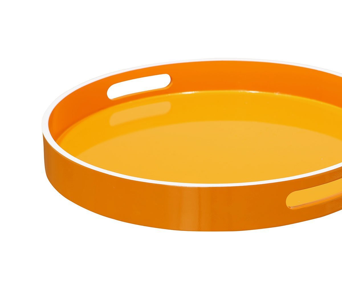 The Etne round serving tray is a necessity for every host and hostess. Use it for gatherings or to organize miscellaneous items in everyday life. The large circular design features a high-gloss lacquer finish and built-in handles.