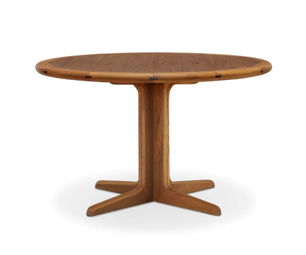 The Evon round extension dining table is ideal for dinner parties, whether they’re intimate or extended. At just under four feet in diameter, the table is sizable without the leaves. It’s crafted from solid teak wood with a natural finish to highlight the wood grain. Two 20-inch leaves create space for more guests.