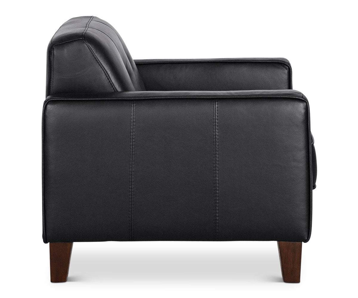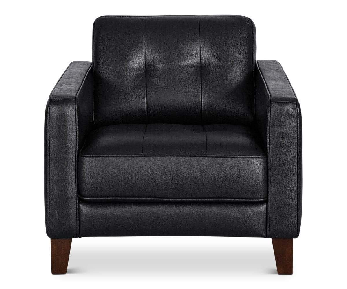 An attractive complement to any living space or entertaining area, the Gregata leather accent chair adds style for an exceptional value. This mid-century modern design features tufting on the seat and back, square arms and a tapered wood legs.