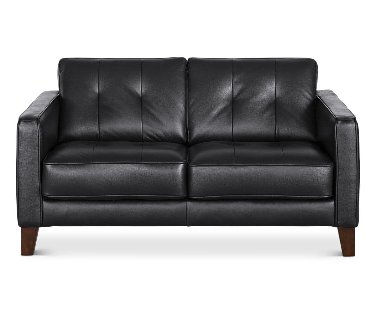 Add a dash of luxury to your space with the Gregata leather loveseat. Featuring a row of tufting along the seat and back, square arms and tapered wood legs. This leather loveseat adds high style at a great value.
