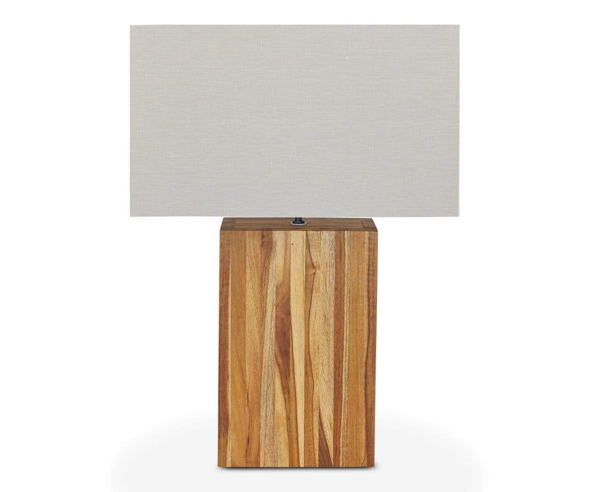 The Hylandi table lamp boasts a wood block base that showcases the stunning grain of the natural teak, and is topped by the unique rectangular linen shade. With this desk or tabletop light source, you'll be giving a nod to Mother Nature as you bring a bit of the outdoors in.
