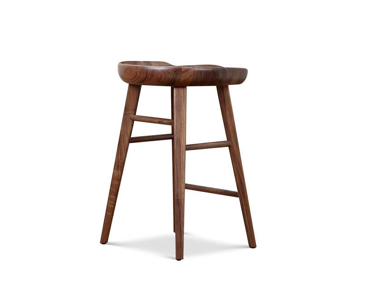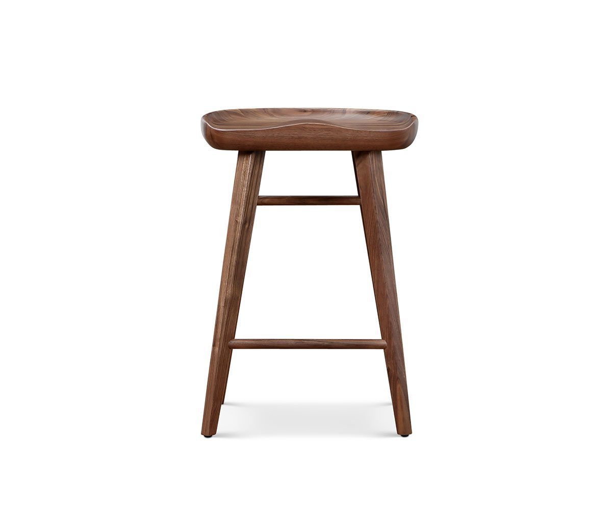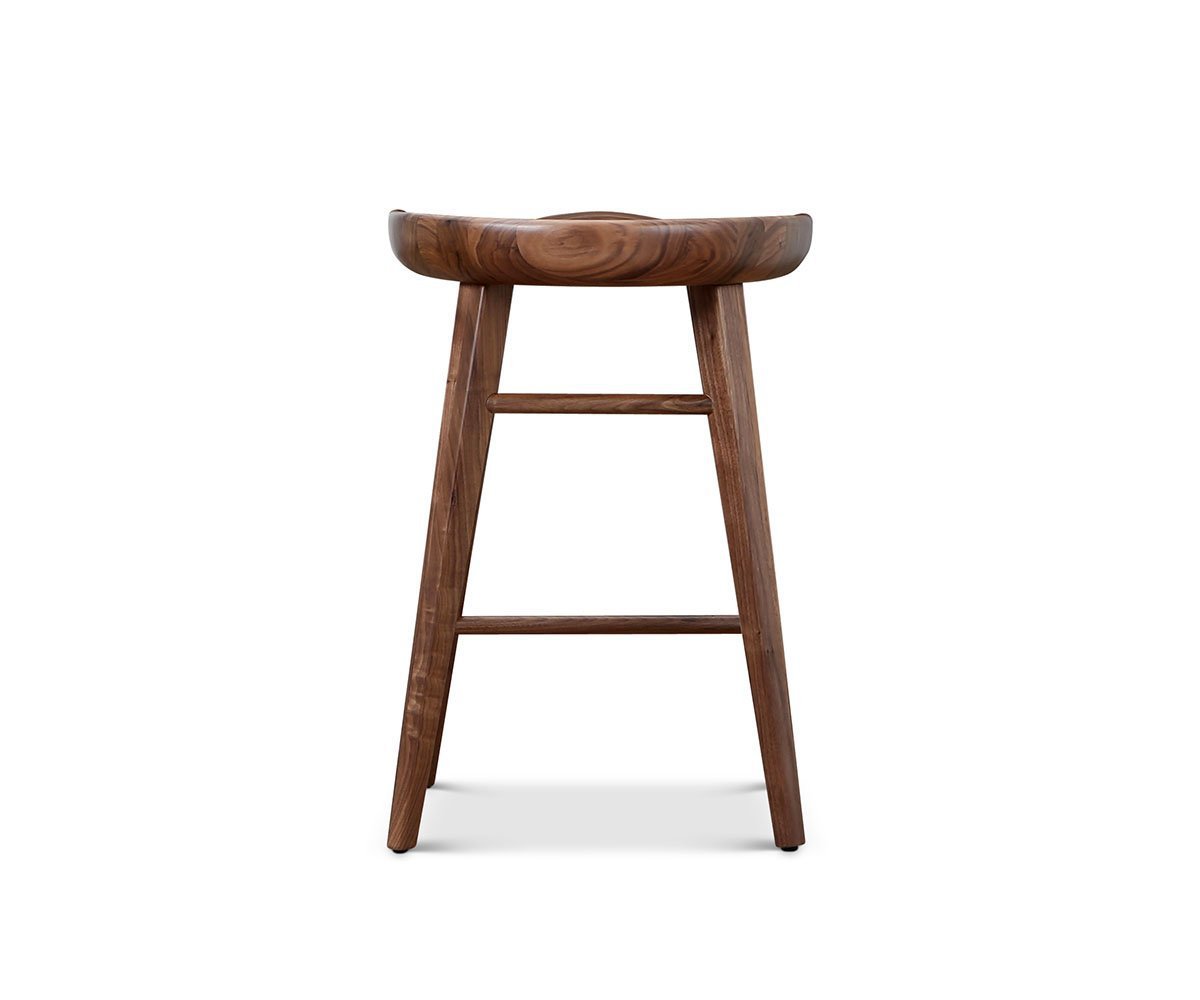 Whether you aim to incorporate the Kallan counter stool into your current decor or create a new casual dining area around a bar table, you'll be pleased with your addition. Made from strong and beautiful solid walnut, the seat is formed for comfort, while showcasing the striking wood grain pattern. Designed to complement any style, this piece can also be used as an extra seat anywhere throughout your home.