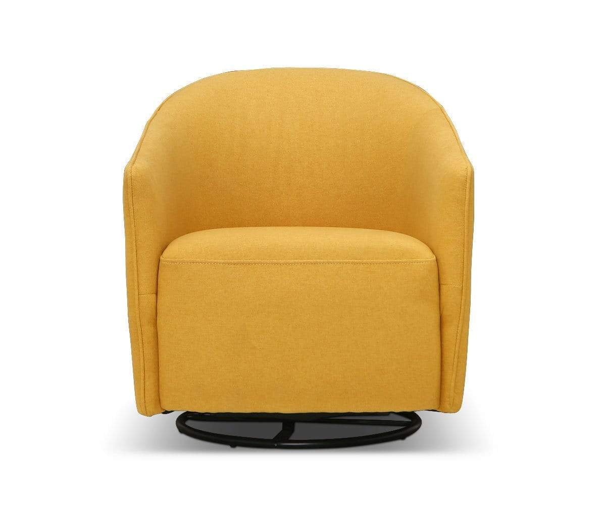 Get comfortable and take a spin in the Komet swivel rocker chair. This soft and inviting chair features a swiveling rocker base. With plush cushioning and colorful fabric, it’s at home in any modern space.