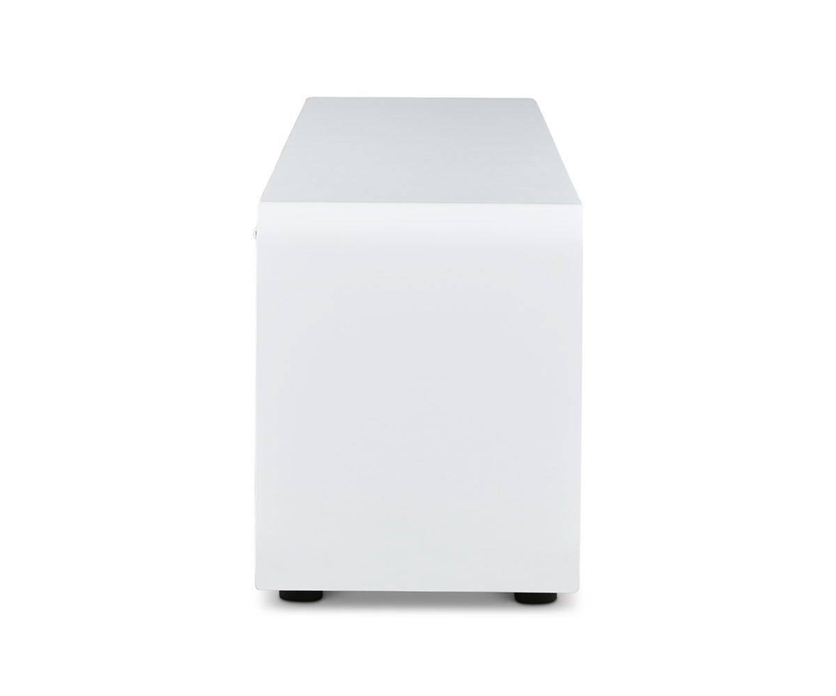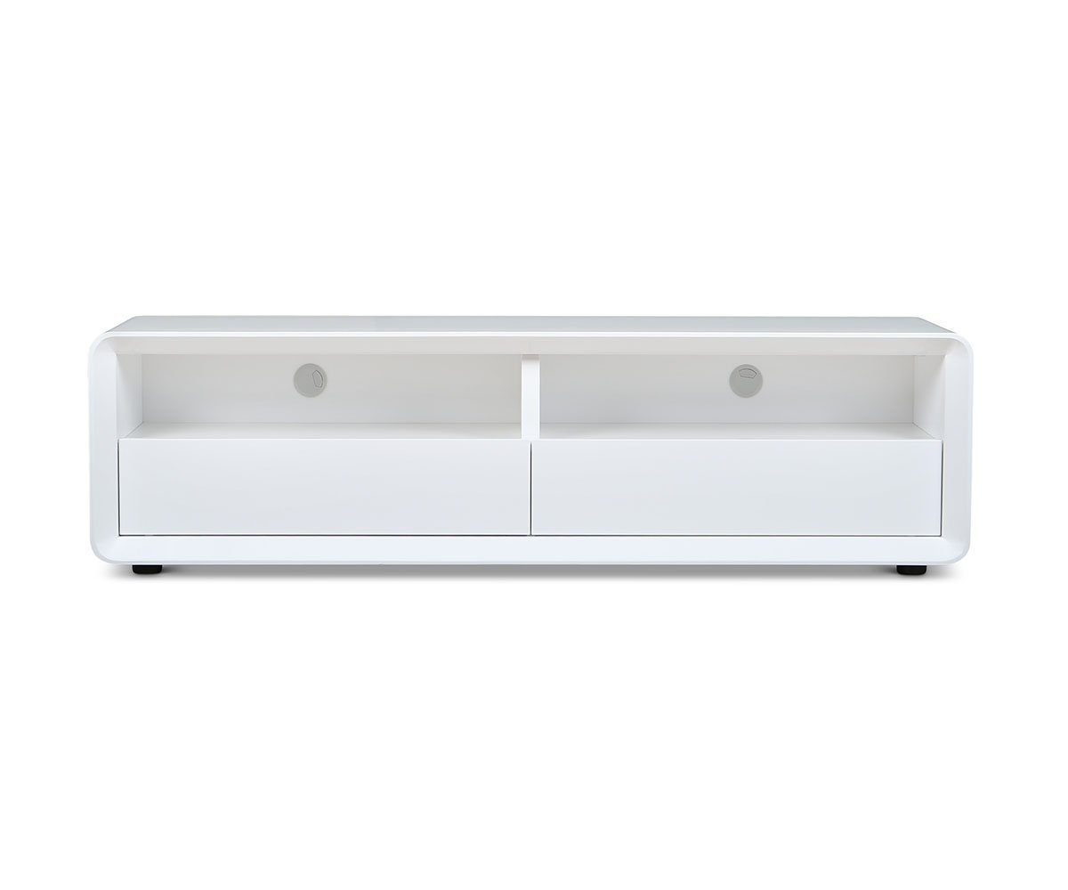 Give a nod to the future with the Kopp media stand, built for everyday use and enjoyment. This “wow” addition to your living room or entertainment area is the epitome of sleek, simple design. Featuring two large drawers and open storage space, clever cord management is also incorporated in the back for your electronics. Whether storing equipment or showcasing collectibles, this piece serves its purpose in contemporary style.