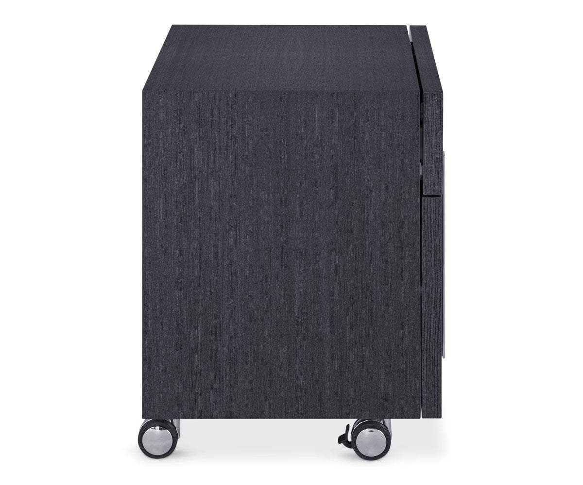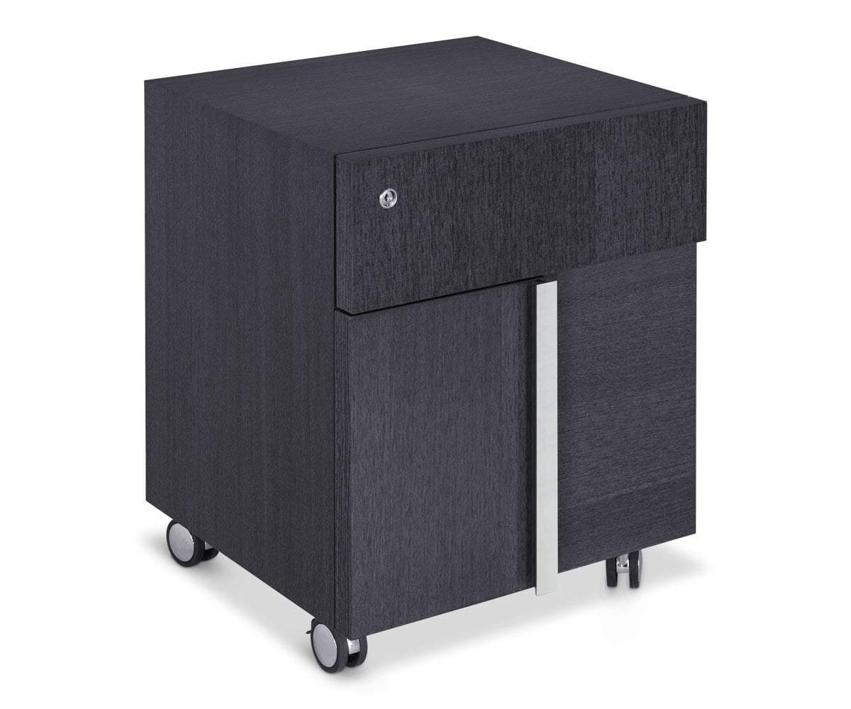 Upgrade your office aesthetic with the Mondiana mobile file pedestal. Crafted in a high gloss koto wood veneer with chrome accents, it displays a chic, modern vibe. The top drawer and lower hanging file drawer both feature a locking system and soft track closures. Casters provide mobility for your convenience.